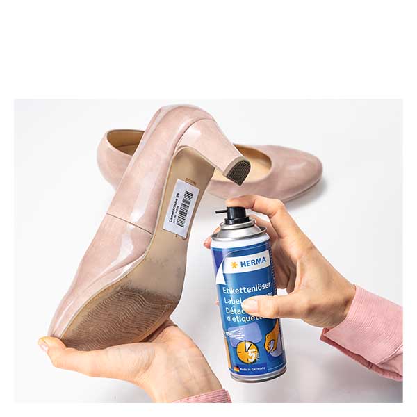 Der HERMA Etikettenlöser Spray Aerosol entfernt selbstklebende unbeschichtete Papieretiketten, zum Beispiel auf Haushaltswaren, Geschirr oder Töpfen, aber auch auf vielen weiteren Flächen und Dingen wie Schuhen oder technischen Geräten schnell und unkompliziert. In der praktischen Sprühdose ist das Spray besonders für große Etiketten oder größere Flächen geeignet. Zur Anwendung einfach die Kappe abnehmen, mit der feinen Sprühspitze auf das Papieretikett auftragen und gut befeuchten. Bereits nach wenigen Minuten kann das Etikett mühelos entfernt werden. Etwaige Kleberückstände oder Restfeuchtigkeit des Lösemittels mit einem sauberen Papiertuch abwischen. Der Etikettenlöser wird in Deutschland und auf pflanzlicher Basis hergestellt. Der Etikettenlöser kann problemlos auf allen unempfindlichen Oberflächen wie Glas, Kunststoff oder Metall angewendet werden. Vorsicht bei empfindlichen und beschichteten Oberflächen und Materialien: vor Gebrauch an unauffälliger Stelle testen.