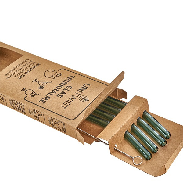 Glas Trinkhalm Set grün mit Softtips UNiTWIST