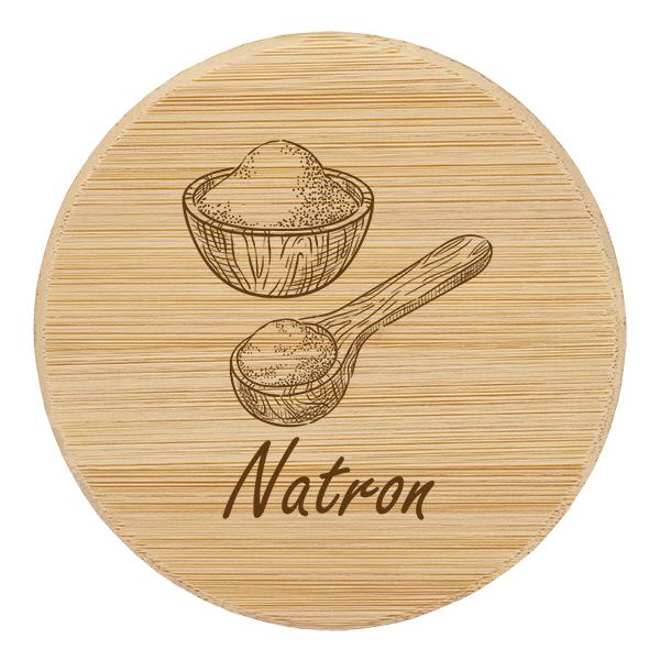 - Aufdruck: Brauner Schriftzug und Bild "Natron"