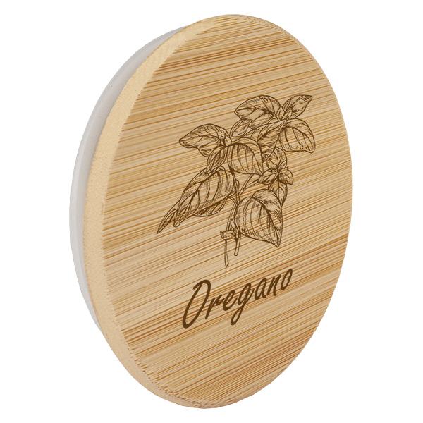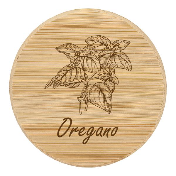 - Aufdruck: Brauner Schriftzug und Bild "Oregano"