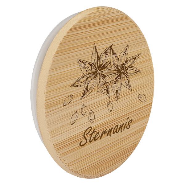 - Aufdruck: Brauner Schriftzug und Bild "Sternanis"