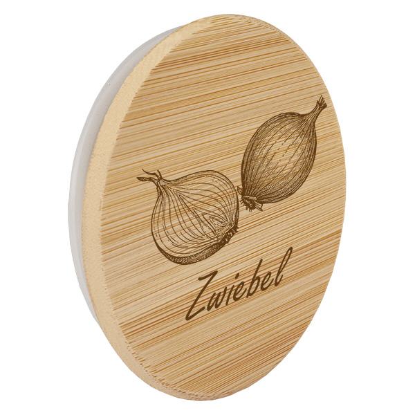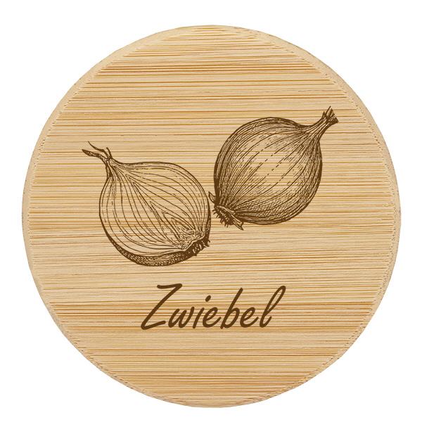 - Aufdruck: Brauner Schriftzug und Bild "Zwiebel"